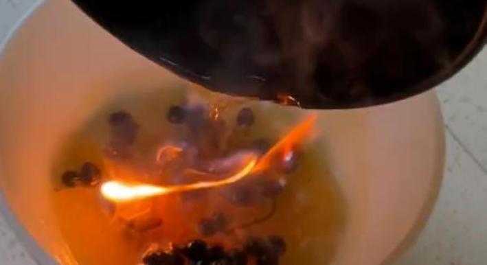▲女子在家做花椒油时,将热油倒入陶瓷碗中,碗无法承受瞬间的高温与冲击,当场破裂。