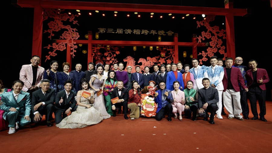 上海独脚戏艺术传承中心(上海市人民滑稽剧团)近日在大宁剧院举办《名尚之夜:万马奔腾贺新岁——第三届滑稽跨年晚会》,为1100多位观众带来长达五小时的欢乐盛宴。作为连续举办三年的活动,老中青三代滑稽人同台献艺。百岁滑稽名家嫩娘也登台为观众送祝福。