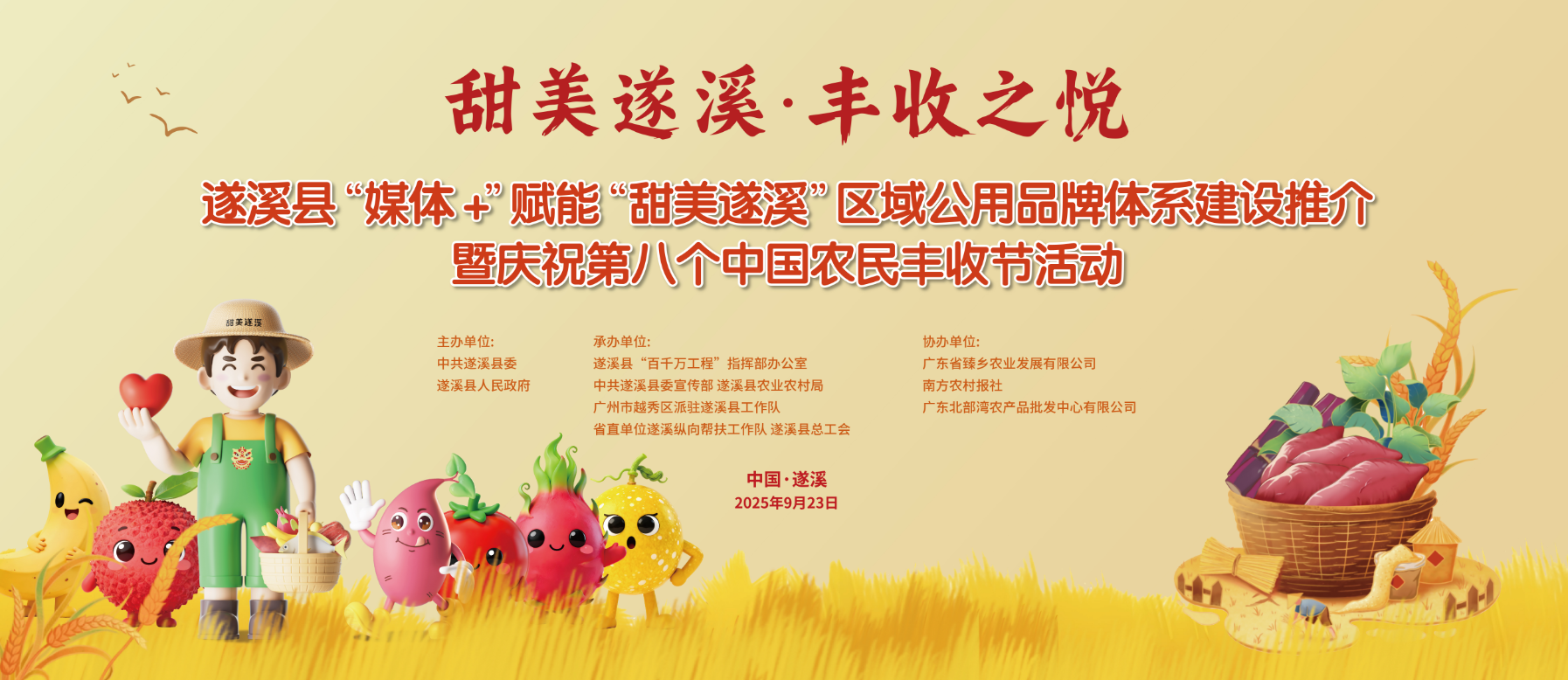 甜美遂溪,千般“丰”味!秋分将至优先配,遂溪县“媒体+”赋能“甜美遂溪”区域公用品牌体系建设推介暨庆祝第八个中国农民丰收节活动将在北部湾农文旅产业园举行,将通过主题发布推介和展示展销,展示丰收成果、拓展帮扶渠道,持续打响“甜美遂溪”区域公用品牌,助力深入推进“百千万工程”,为农业高质量发展注入新动能,助力遂溪乡村全面振兴。